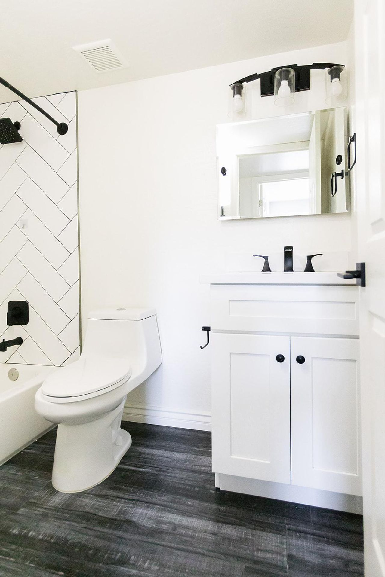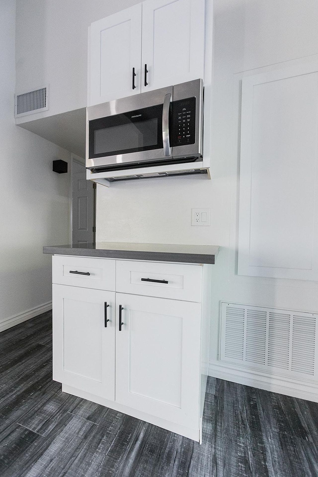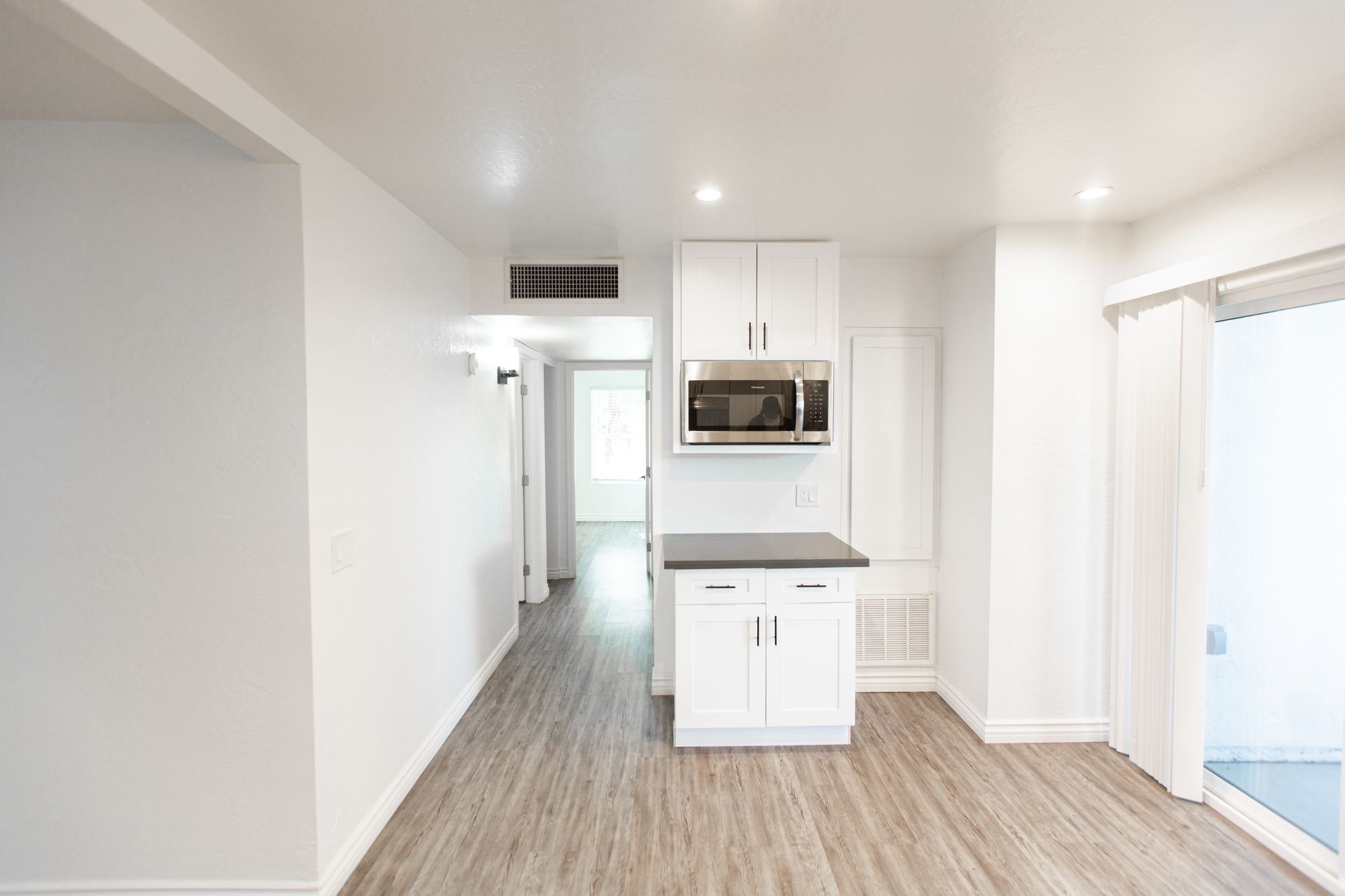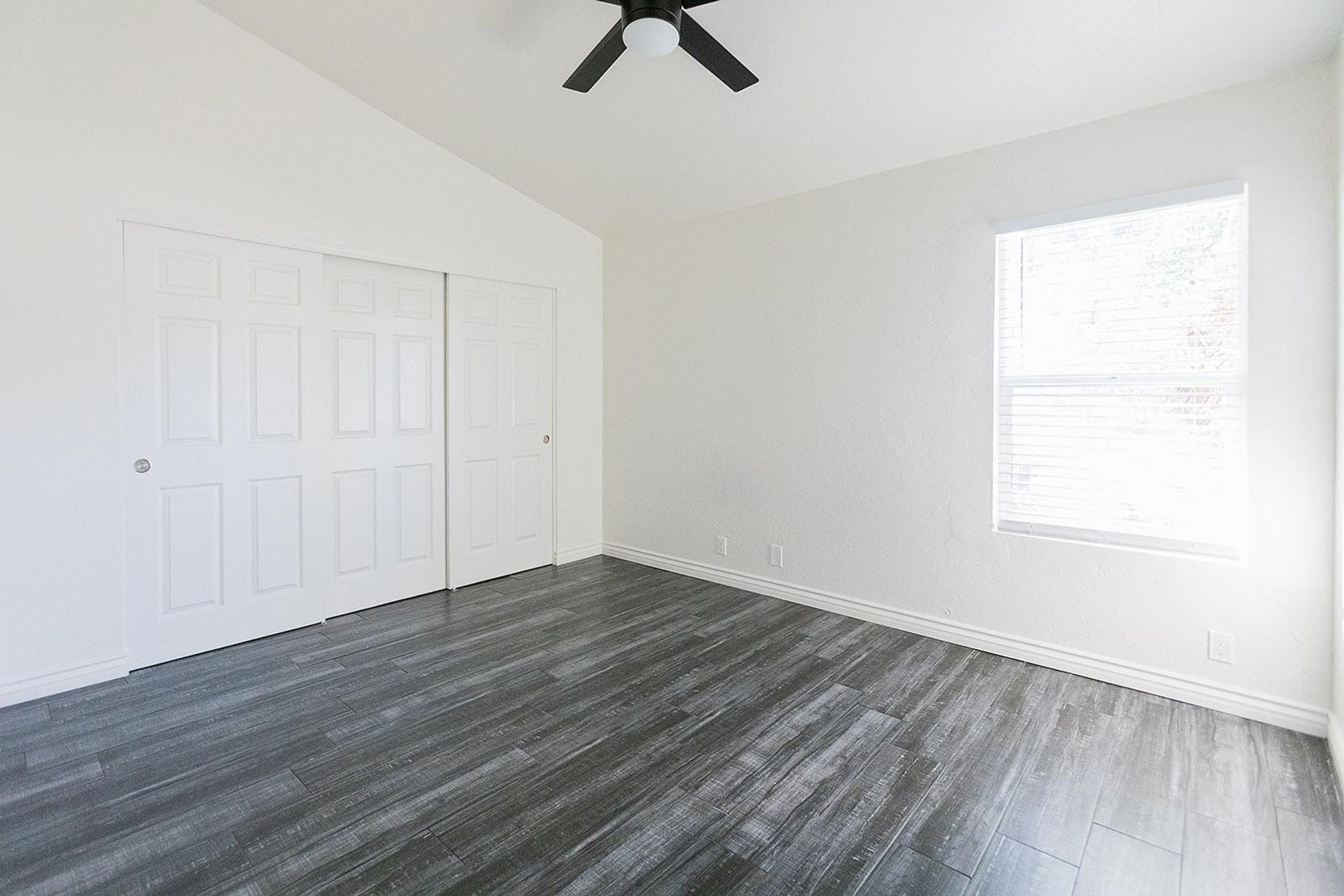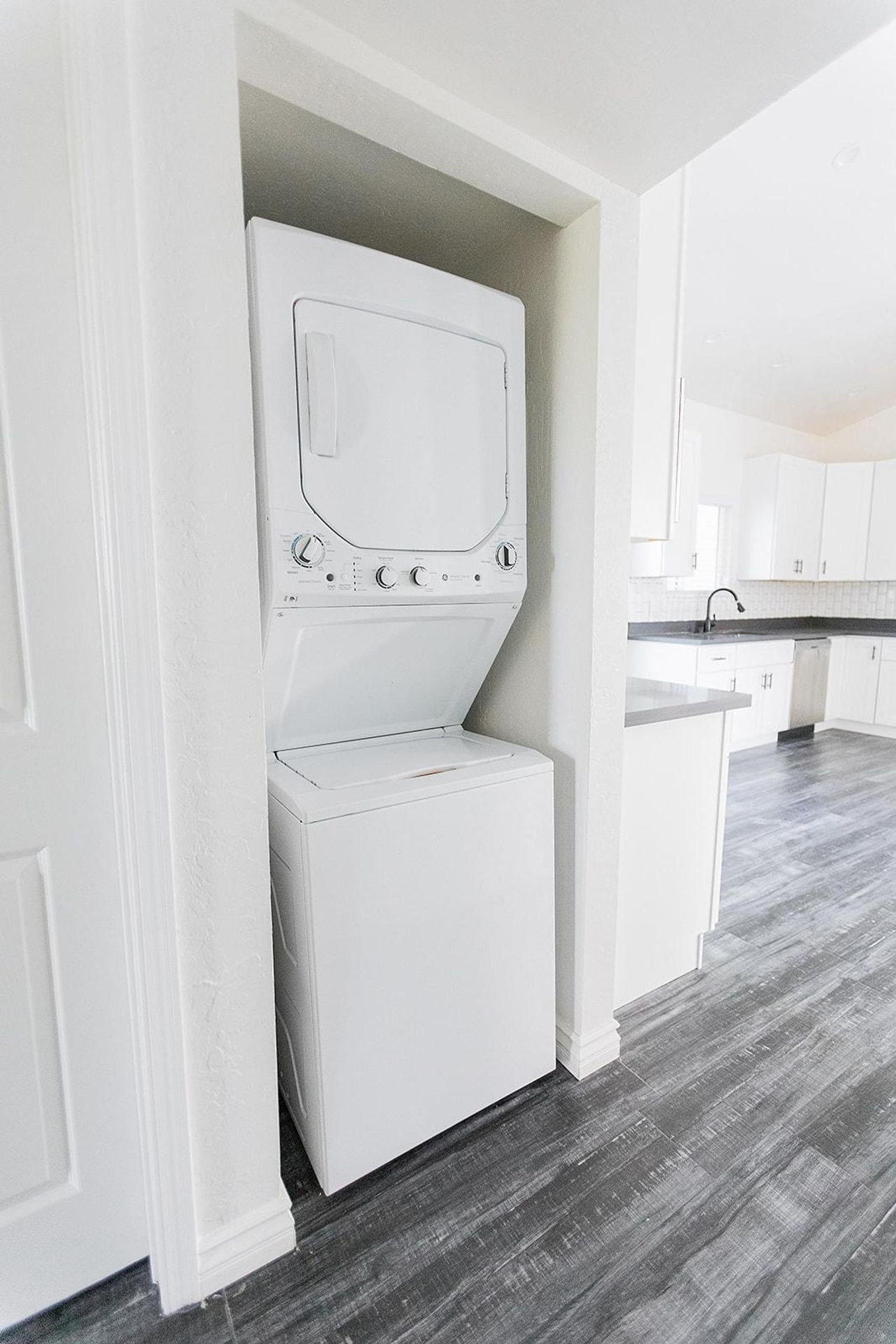 This pristine 2BR/2BA boasts a private patio, vaulted ceilings, stainless steel appliances, shaker cabinets quartz countertops, and subway tile surrounds in the kitchen and bath, plank flooring throughout and a fireplace!