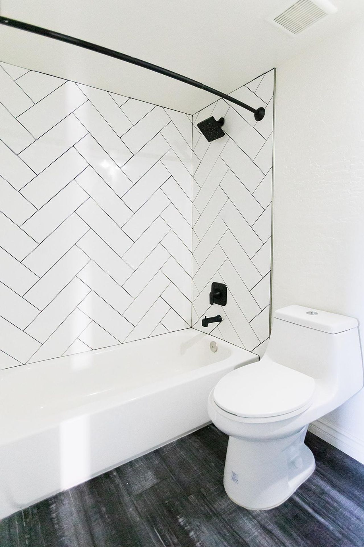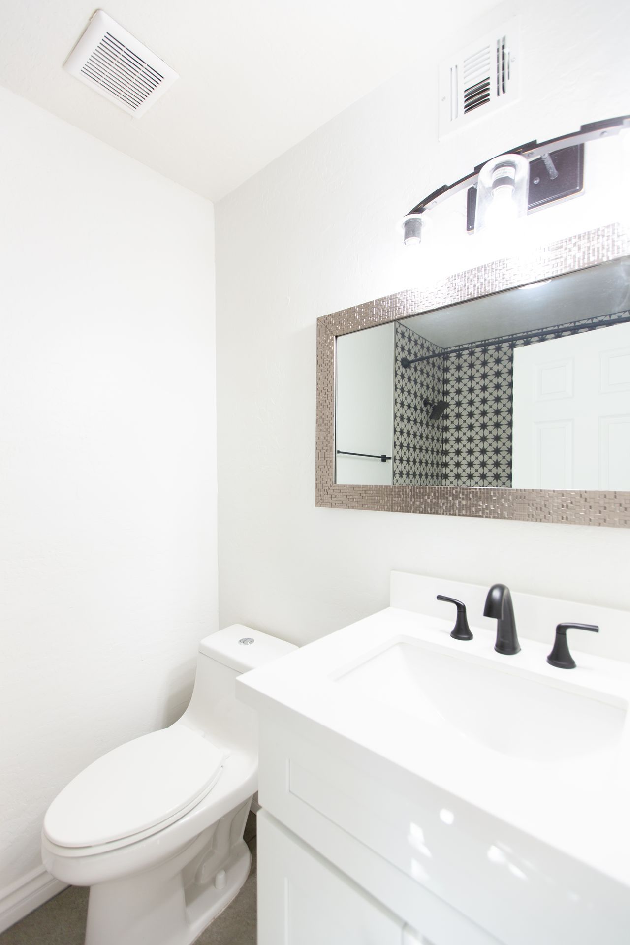 The owner's bath boasts a Moroccan style patterned tub tile surround.