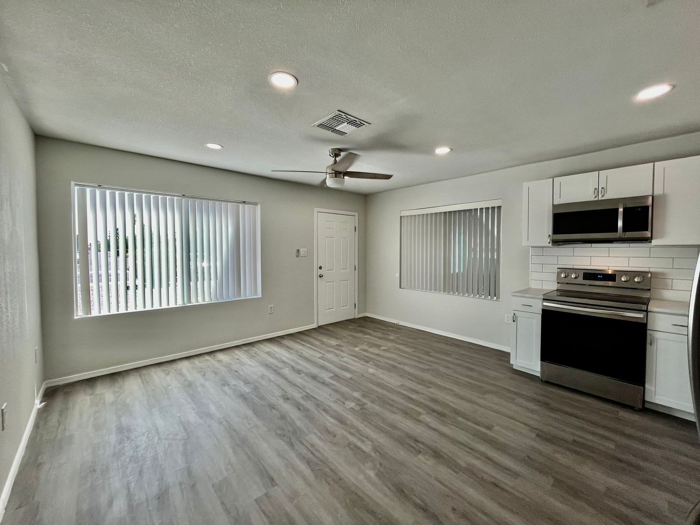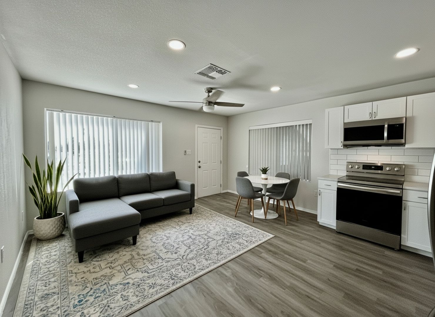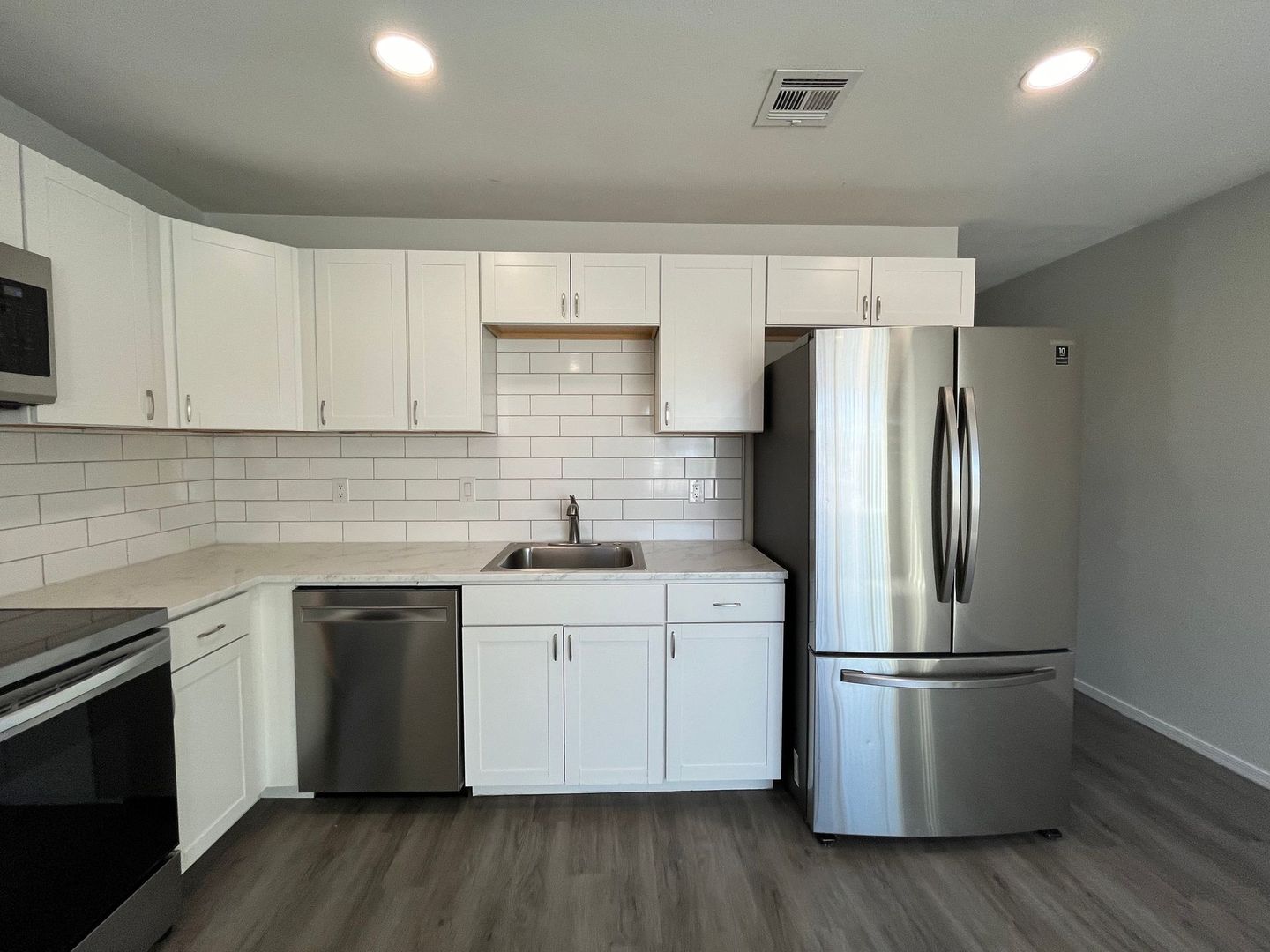 Welcome to 3744 N 12th St, a stylish and updated apartment offering a bright, open living space with faux wood flooring, ample natural light, and ceiling fans in every room. The kitchen features sleek white cabinets, quartz countertops, subway tile backsplash, and stainless steel appliances, while an in-unit washer/dryer adds convenience.