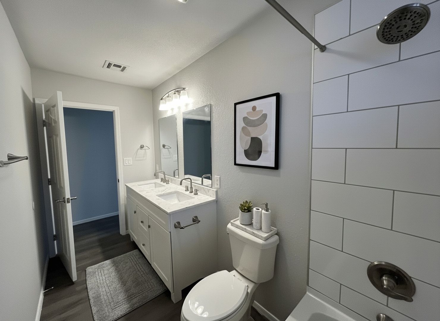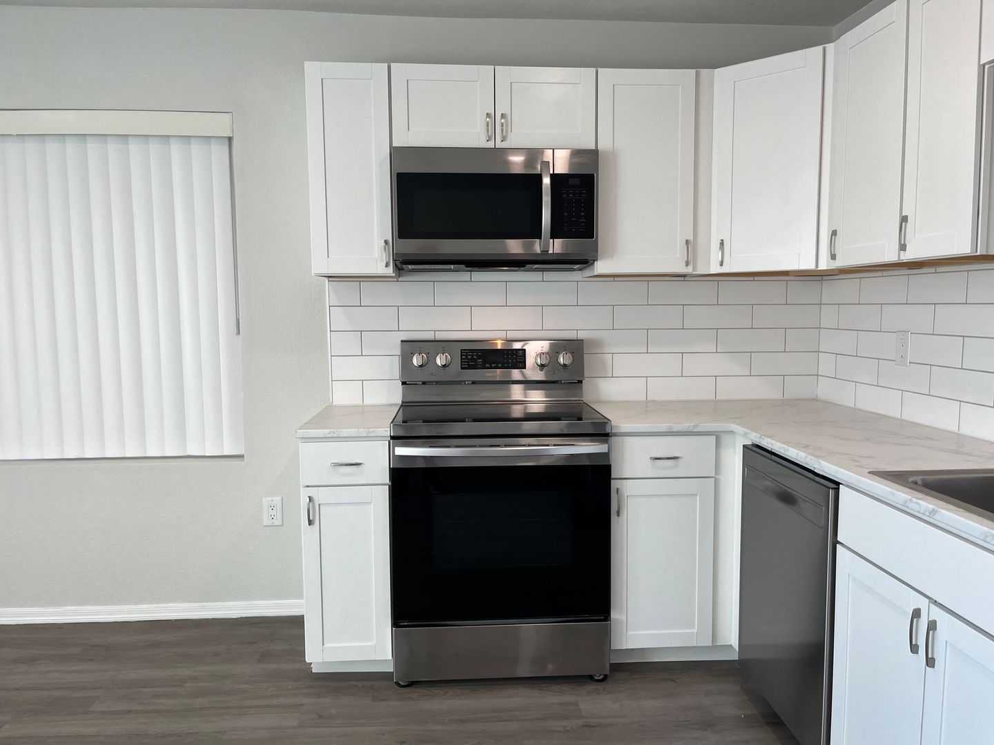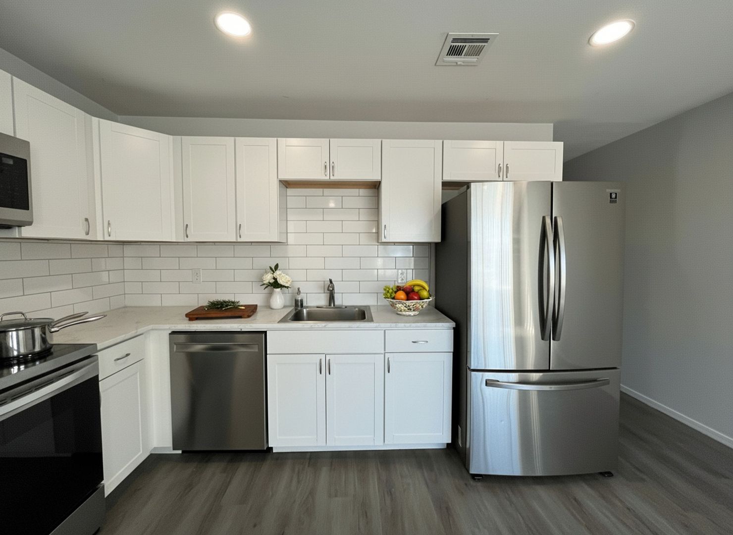 Welcome to 3744 N 12th St, a stylish and updated apartment offering a bright, open living space with faux wood flooring, ample natural light, and ceiling fans in every room. The kitchen features sleek white cabinets, quartz countertops, subway tile backsplash, and stainless steel appliances, while an in-unit washer/dryer adds convenience.